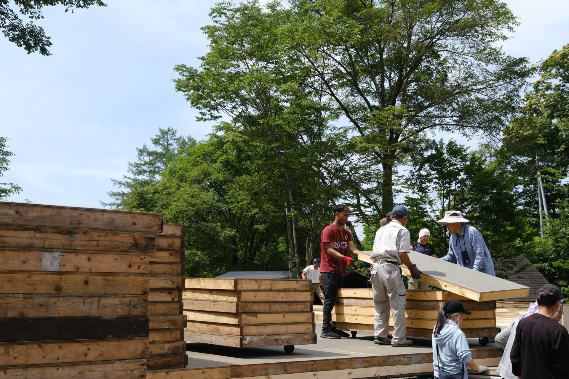 木製パネルの運び出し。