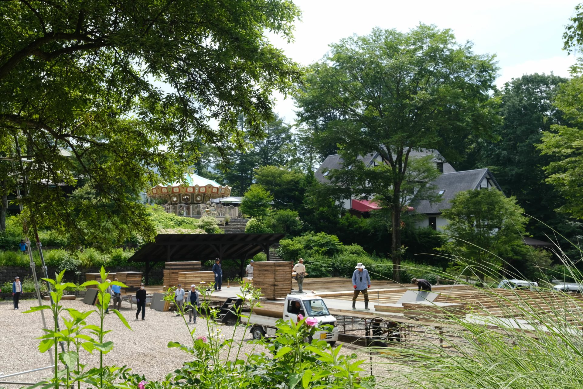 軽トラックに積み込んで舞台上に。